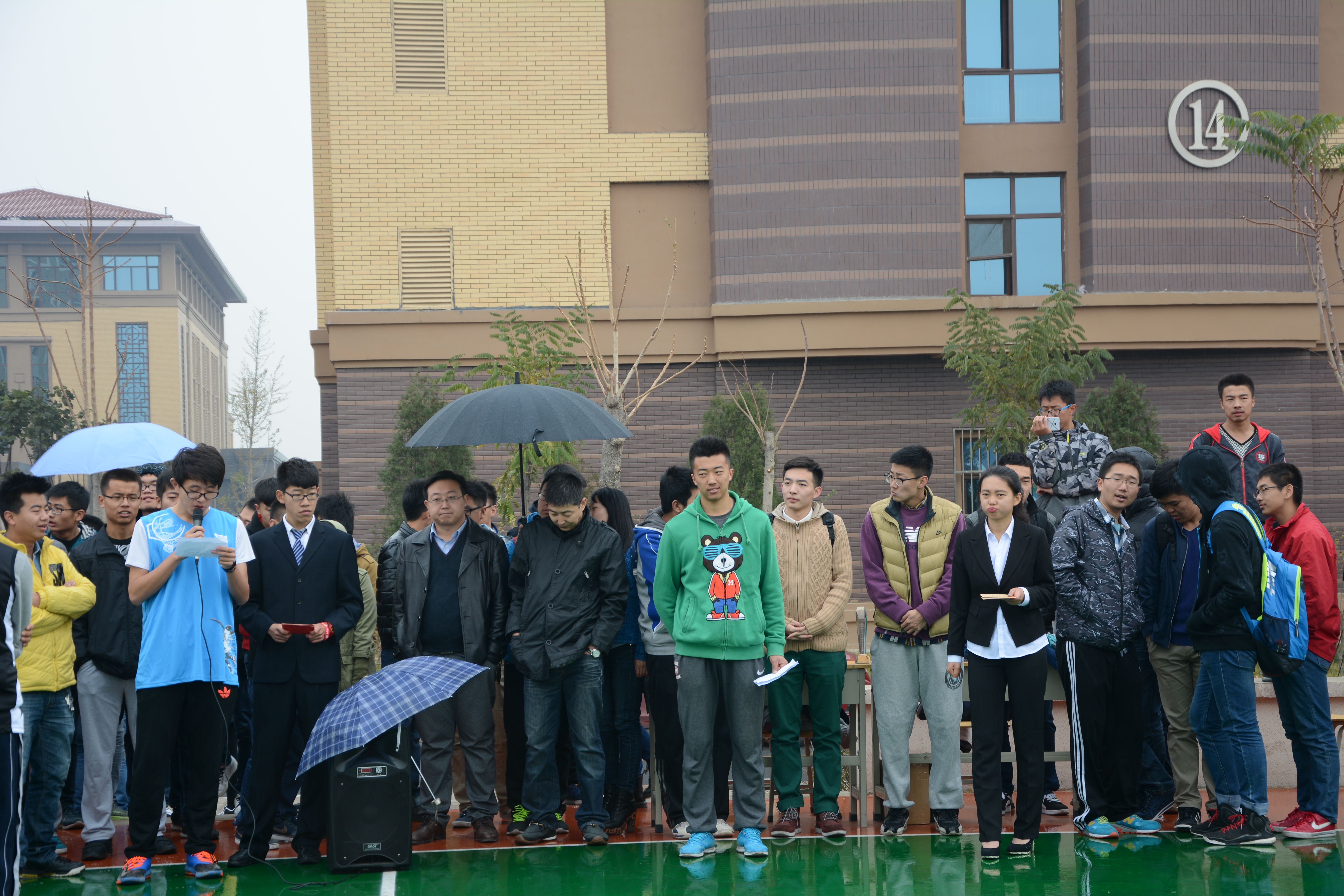 午十二时许,开幕式按时召开,尽管天气恶劣,同学们依然热情高涨。永利官网团委书记王飞老师,14级全体辅导员出席本次开幕式。开幕式上王飞老师致辞,他肯定了篮球赛的积极意义,同时也表达了对篮球赛的期待与祝福。随后, 113街舞社团和CUBA篮球宝贝带来了欢快劲爆的街舞表演和激昂动感的拉拉操使现场气氛更加轻松活跃,舒缓了运动员们面对比赛的紧张情绪。运动员代表和裁判员代表分别宣誓,运动员将弘扬“更高、更快、更强”的体育精神,以良好的精神风貌赛出风格,赛出水平,裁判员也将公平裁判,维护公正的体育裁决信誉。