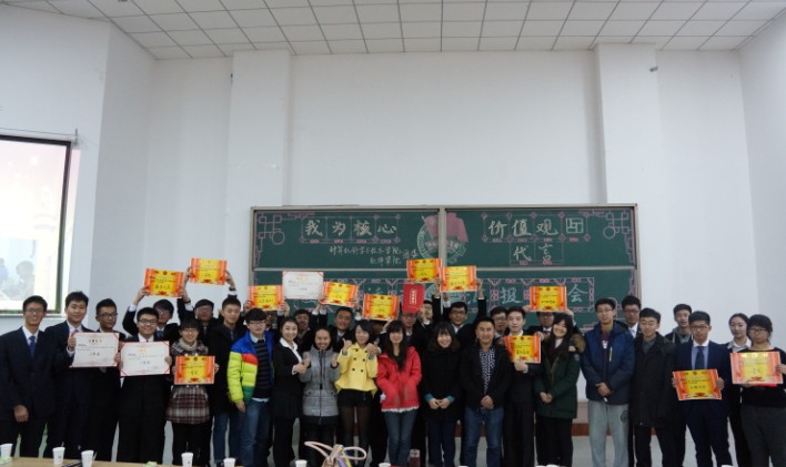 活动的最后由各位嘉宾为获奖班级颁发荣誉证书,软件1429班获得积极进取奖,软件1401班获得文明风尚奖,物联网1402班获得立意深刻奖,软件1406班获得最佳人气奖,软件1428班获得最佳氛围奖,软件1427班获得最佳创意奖;软件1402,1411,1431班获得三等奖,软件1416,1432班获得二等奖,软件1404班获得一等奖。各个获奖班级的代表与颁奖嘉宾合影留念,会议在团委学生副书记高堃的总结发言下圆满结束。