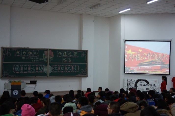 活动开始由计算机科学与技术学院的班级为大家展示他们的团日活动,2班的同学以诙谐幽默的视频拉开了汇报的序幕,台下的观众也被他们精心制作的街头采访及快问快答环节感染,为大会定下轻松的基调。随后出场的物联网1、2、3班分别从学雷锋活动和手工DIY等几个方面分别诠释了社会主义核心价值观在现实生活中的实践。接下来出场的软件工程32个班级也充分展示了他们的班级特色,5班依靠新媒体的广泛性很好的发扬传播了社会主义核心价值观;7班以视频的方式详实记录团日活动过程;16班更是创新汇报形式,以书信的方式使同学们更好认识到团日活动与我们密切相关。另外,一些班级最后慷慨激昂的或宣誓,或唱革命歌曲表达出自己对社会主义核心价值观的信心。活动中场休息,由永利官网团委精心制作的关于团日活动的视频以及PPT为大家总结了各班的特色活动,还有校歌合唱比赛一等奖的班级精彩视频播放。随后由物联网1302,软件工程1303,1324班的同学代表2013级学生展示了他们的团日活动。