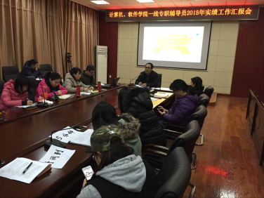 2016年1月25日上午,计算机科学与技术学院 永利集团3044官网欢迎您学工办在永利集团3044官网欢迎您一层会议厅召开了一线专职辅导员2015年实绩工作汇报会。学院党委副书记池卫平及全体辅导员参加了此次考评会议。