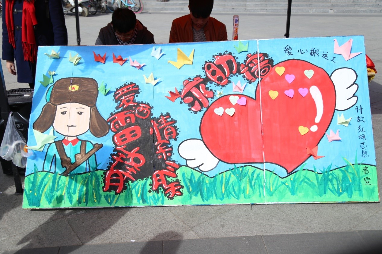 有人说“雷锋同志没户口,三月来了四月走”。因此,活动一开始我们的青年志愿者们便全力以赴,拉赞助,做横幅,设计展板,努力将活动影响力深化。然而,只有志愿者们的努力还远远不够,需要我们人人都参与其中,才能真正将我们身边的“雷锋”留下。