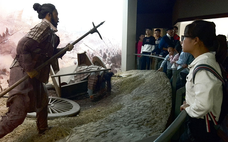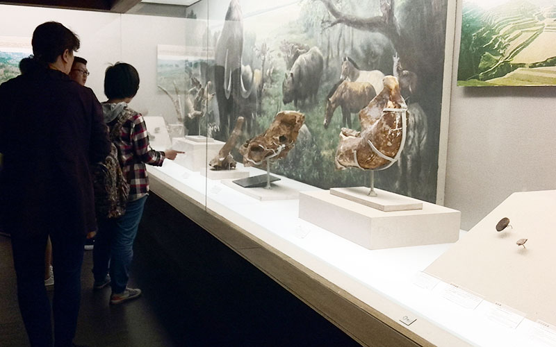 山西博物院的基本陈列以“晋魂”为主题,由文明摇篮、夏商踪迹、晋国霸业等7个历史文化专题和土木华章、山川精英、翰墨丹青等5个艺术专题构成。每个不同的主题风格各不相同,大量珍贵的文物使同学们眼前一亮。在这里,同学们看到了山西省内各个市的古迹古物,山西博物院藏品众多,年代跨度大,种类也很丰富:从距今180万年的兽类头骨化石,到一具距今1.8万年的人体骨骼,能看到最“原生态”的文物;从商周古拙的青铜大鼎到明清精美的各类瓷器,能看到祖辈们用智慧和勤劳创造的艺术珍品;从形态生动的汉魏陶俑到内容丰富的北齐壁画,能看到古人的日常生活也充满了情趣和美感……参观中,大家或叹为观止,或赞不绝口,积极地讨论历史知识,并拍照纪念。