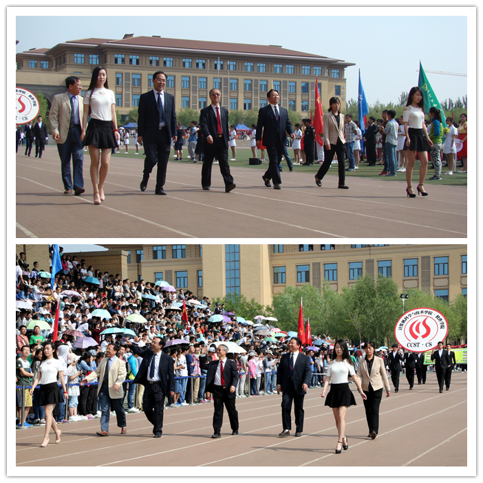 5月20日上午,我校2016年学生田径运动会开幕式在明向校区体育场举行。校党委副书记沈兴全,副校长李晋平、梁丽萍、吕永康、戴晋明,中国人民解放军驻我校后备军官选拔培训办公室主任张春平 大校出席本次开幕式。学校各职能部门、各学院负责人及运动会组委会成员在主席台就座。