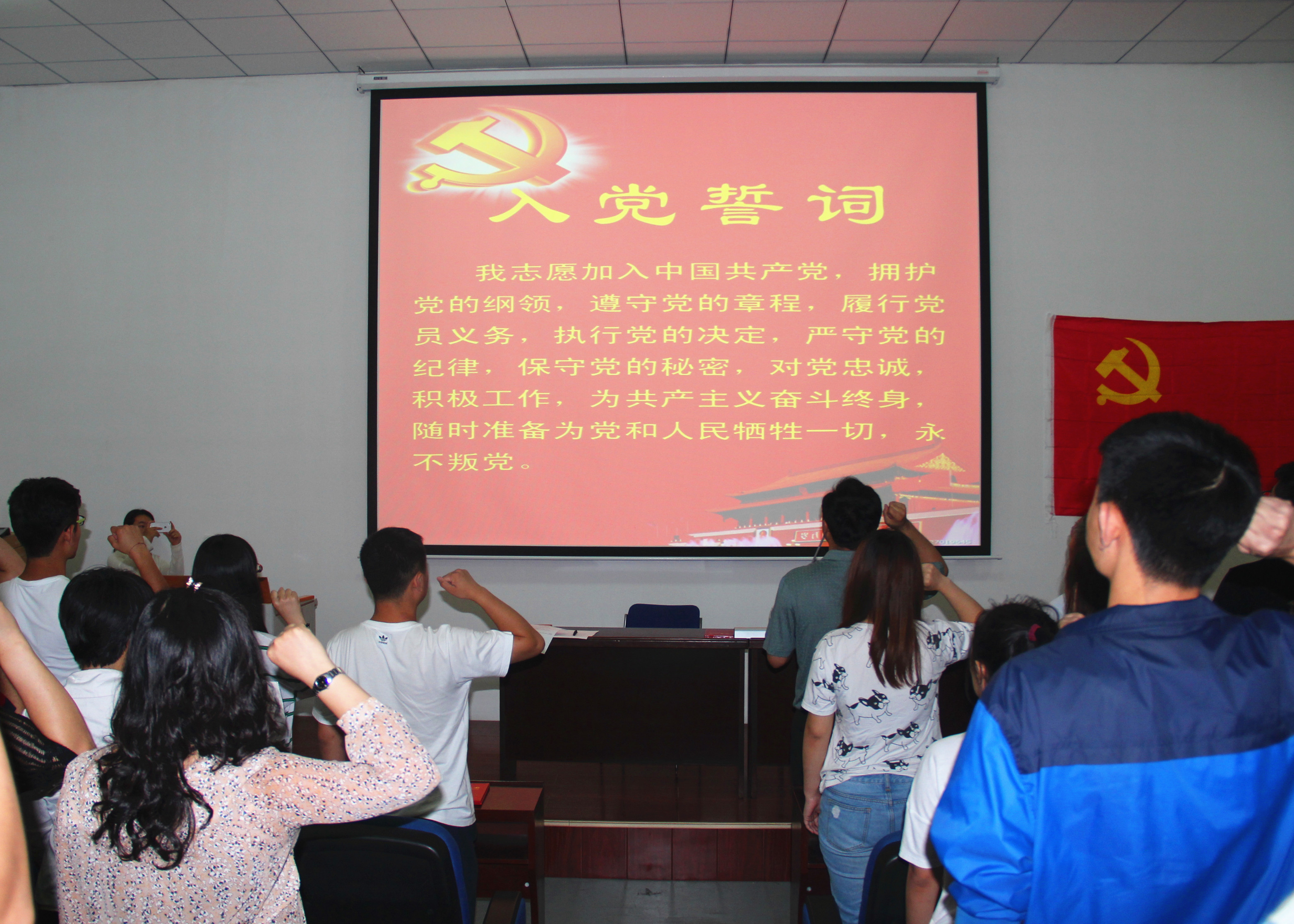 随后,院党委领导梁宪生、池卫平为新党员代表佩戴党徽,为全体新党员配发党徽。接着,池卫平副书记领誓,全体新党员面向党旗,举起右拳,庄严宣誓,全体党员集体重温了入党誓词,铿锵有力的声音,表达了党员们为共产主义事业奋斗终生的决心。