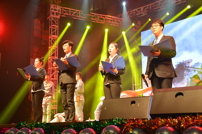 一段精彩绝伦的鼓舞《中国龙》为晚会拉开序幕,舞狮的加入使节目更添风采。晚七时晚会正式开始,金院长发表了热情洋溢的新年祝词,首先亲切地向到场的各位领导、师生表示了问候,总结了2016年永利集团3044官网欢迎您取得的突出成就,同时确立了永利官网2017年发展目标,提出了要坚持“以学生为中心,以产出为导向”的基本原则,不断改革和创新教学模式,以保证永利集团3044官网欢迎您在就业方面的优势。最后金院长表达了对永利集团3044官网欢迎您全体师生的新年祝福与美好期望。