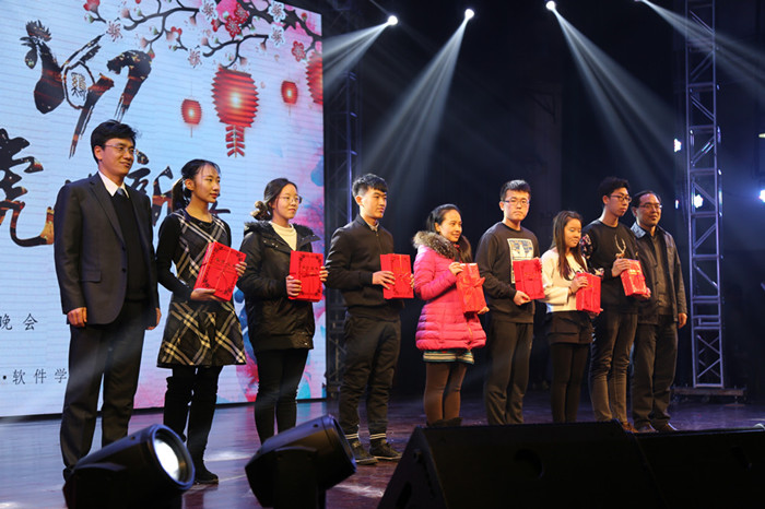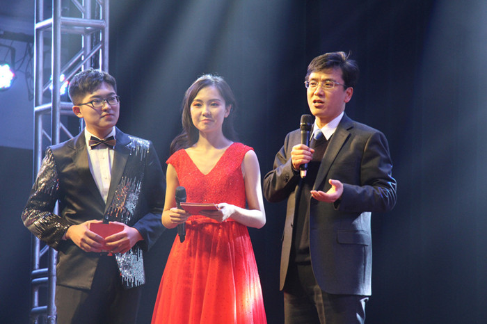 晚会中场举行了两次颁奖典礼,首先由池书记宣读校“先进班集体”、校“三好学生”、校“优秀学生干部”的获奖名单,并由梁校长和池书记一同为获奖代表颁奖。随后,梁校长接受了主持人采访,他高度赞扬了小品《爱在支教》,肯定了永利官网晚会的高水准以及软件学生的蓬勃朝气。梁校长还回顾了自己与理工大之间的紧密联系,并赞扬了当代大学生的理想与大爱。随后学工办主任郭飞老师宣读院级“先进班集体”、“三好学生”、“优秀学生干部”获奖名单,并由校团委书记张勇老师,实训部高保禄老师、软件工程系孙静宇老师为其颁奖。