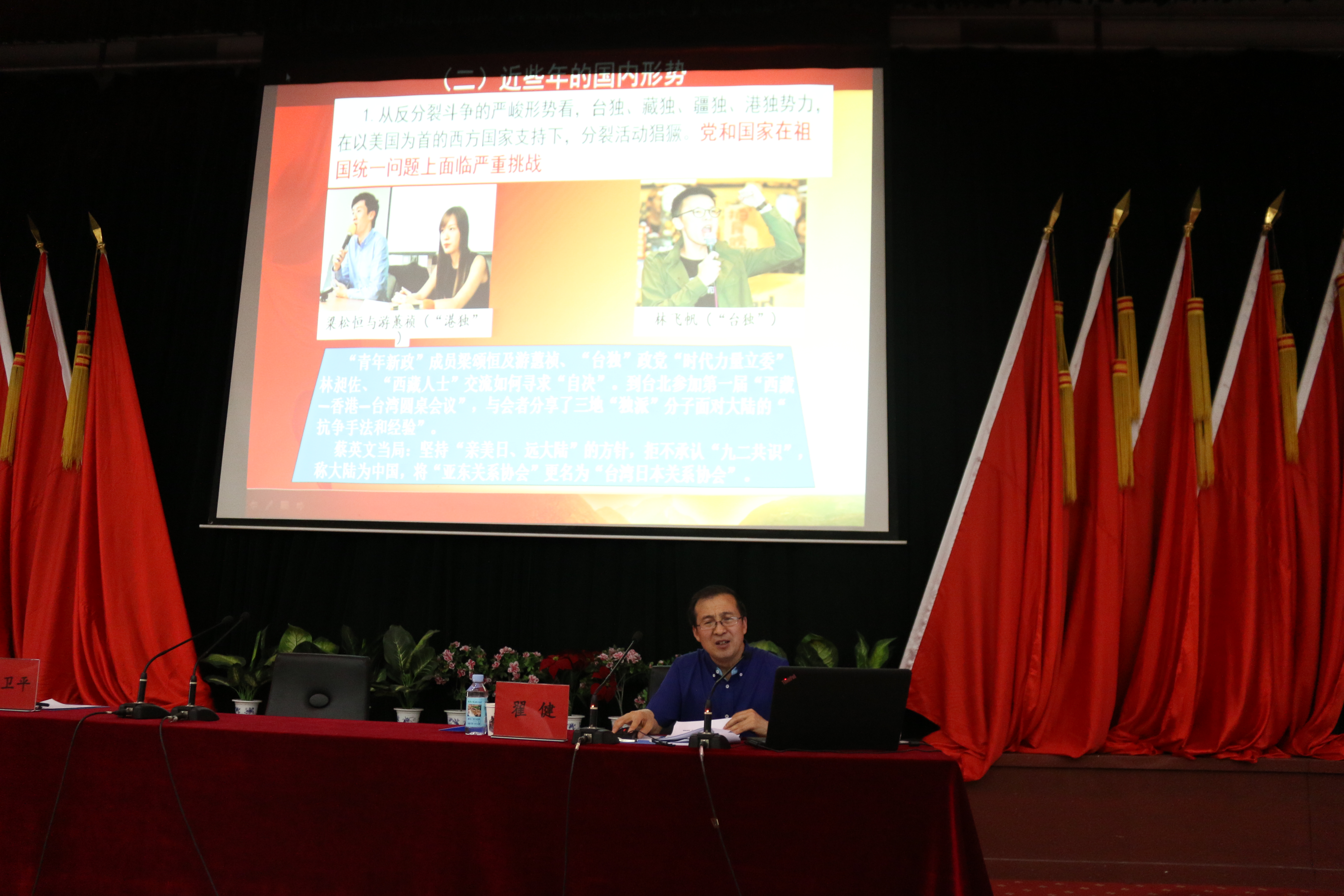 6月16日下午,永利集团3044官网欢迎您党委在博学楼二层报告厅开展学习贯彻十八届六中全会精神学习辅导,我校纪委书记翟健应邀做了题为《国际国内党内的严峻挑战形势与全面从严治党》的专题报告。学院领导、各系、部负责人和全体党员及部分入党积极分子共计300余人参加了此次报告会,会议由学院党委副书记池卫平主持。