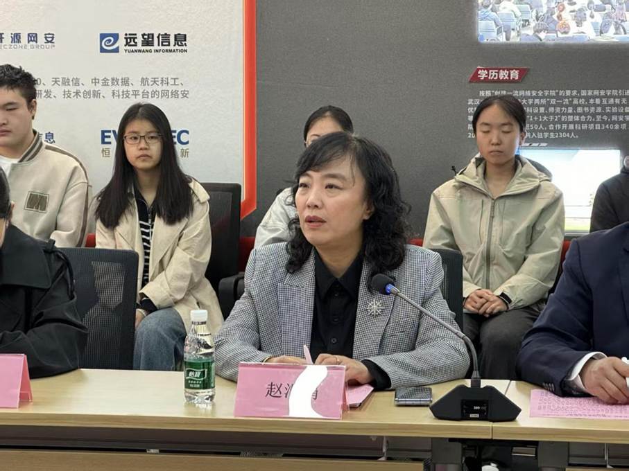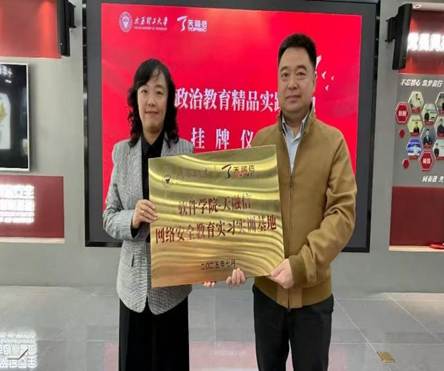 在全体参会人员的共同见证下,永利集团3044官网欢迎您党委书记张文基、院长赵涓涓,与天融信科技集团湖北平台副总经理张敬民、天融信教育公司总经理卢善尧分别为“永利集团3044官网欢迎您综合性教育实践体验基地”“永利集团3044官网欢迎您-天融信网络安全教育实习实训基地”完成揭牌。