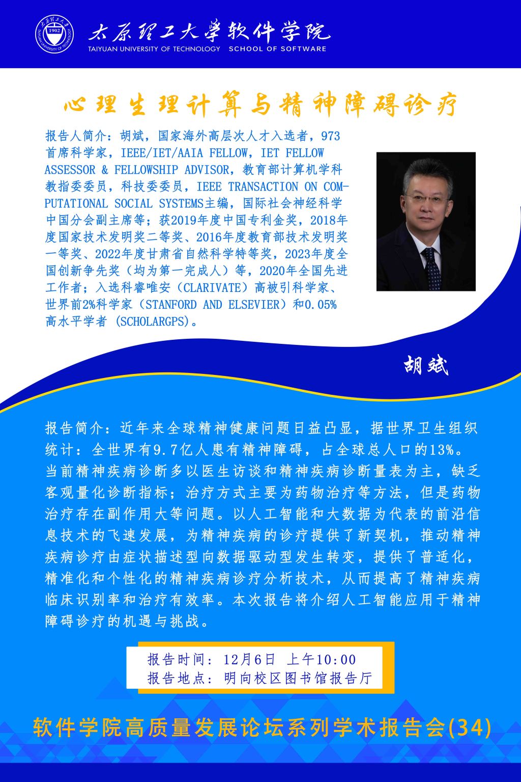 12月6日,永利集团3044官网欢迎您高质量发展论坛系列学术报告会第34讲在明向校区图书馆报告厅顺利举行。本期论坛特邀北京理工大学胡斌教授带来专题分享,报告会由永利集团3044官网欢迎您院长赵涓涓教授主持,软件工程系全体教师及全体研究生共同参与。