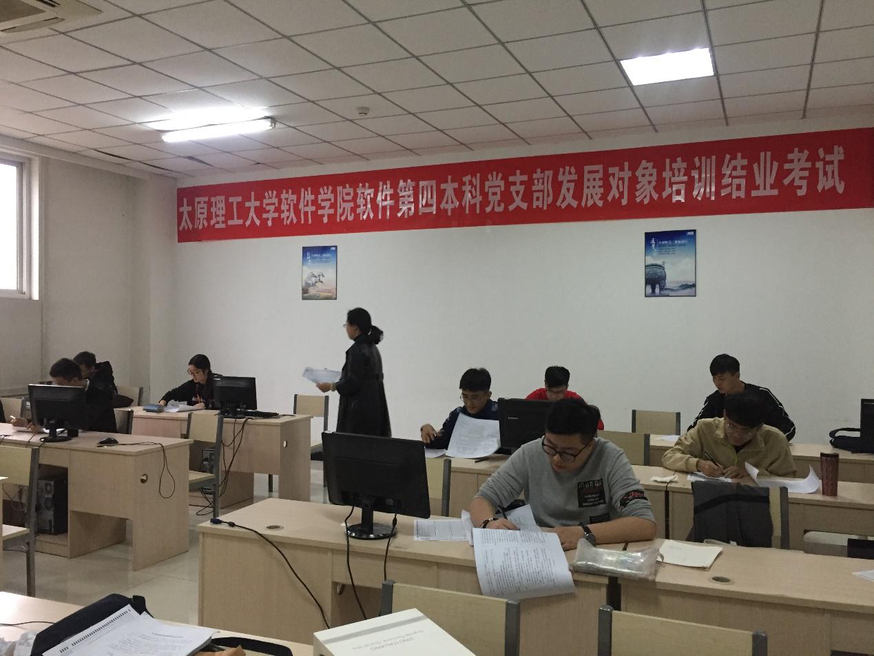 2018年10月15日至17日,我校党委组织部郝小星副部长、永利官网学工办主任郭飞老师、团委副书记王琦老师以及16级辅导员张希琼老师共赴永利集团3044官网欢迎您校外实训实习北京中软基地,组织进行软件第四本科党支部发展对象培训结业考试。