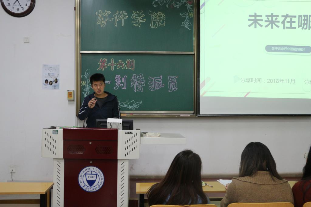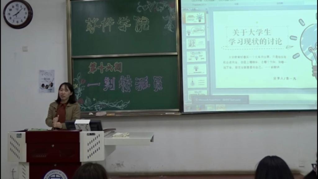本次“一刻特派员”,分别由软件第一本科党支部的安泽芸、刘子杰、景一凡担当,分享了各自的所闻所感。首先,安泽芸同学以互联网领域近年来兴起的“区块链”为主题,为同学们讲述什么是区块链、区块链在日常生活中的涉及领域以及区块链的技术与工作原理,让大家对这一可充分规避诈骗但却是最安全的数据管理方式进行了简要了解;接下来,刘子杰同学围绕“未来”为同学们讲述了未来行业的预期以及IT行业的未来发展趋势,接着又列举了几个当下较热门的专业领域,用专业的就业分析角度为同学们描绘了一个未来的蓝图;最后,景一凡同学简要分析了“大学生的学习现状”,并通过文字与短视频,为同学们讲述了如何提升学习效率、如何培养自律能力以及如何不虚度大学生活,为在座同学带来了启发与思考。