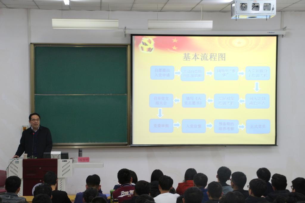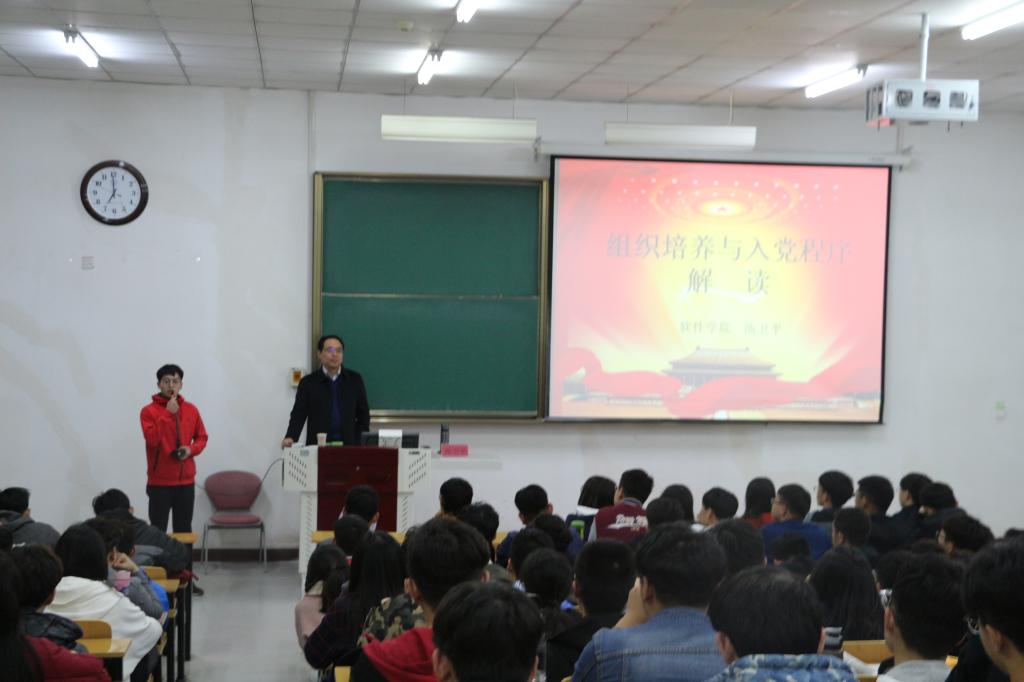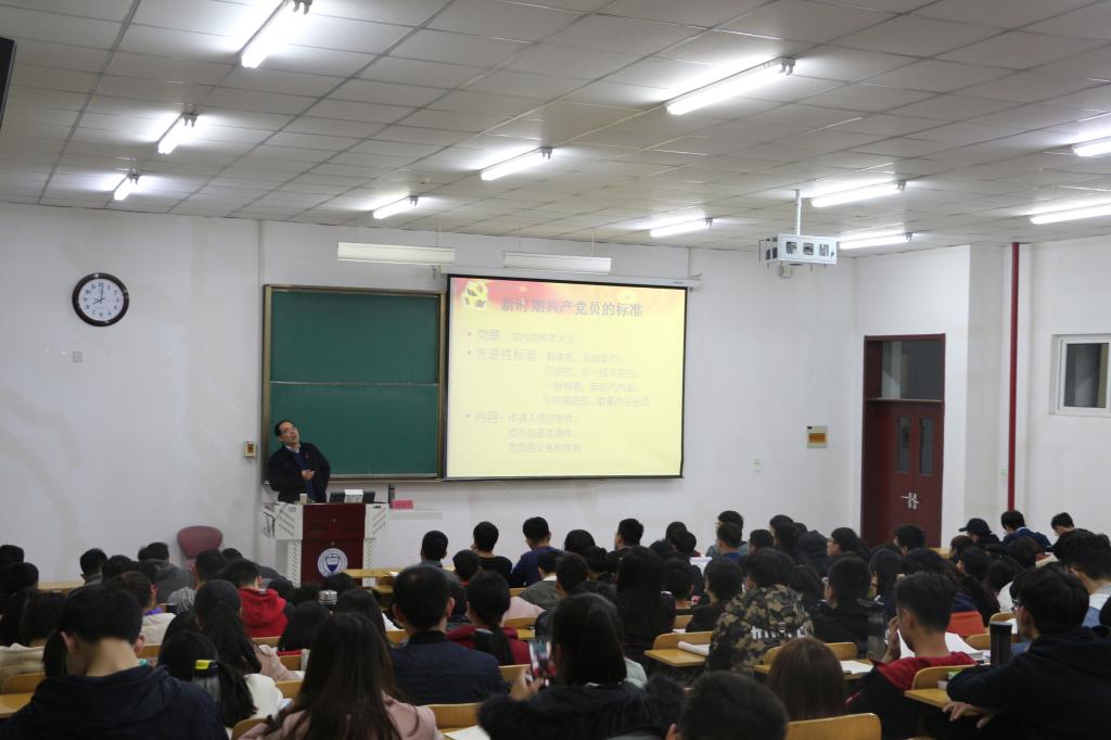 池卫平书记以“组织培养与入党程序解读”为主题,简要介绍了加入中国共产党的基本流程,强调了“自愿”、“主动”、“积极”等几个关键字眼,明确了加入中国共产党的必备条件。接着,池书记为大家介绍了入党的基本原则和重要表述,围绕“要求”“坚持”“原则”展开了阐述,同时也表示中国共产党在发展新党员过程中的“禁止”与“反对”,让各位入党积极分子体会到了党的神圣与尊严。在授课过程中,池书记还指出同学们对入党的常见认识误区并对其进行了纠正,呼吁大家端正入党动机,并达到作为一个优秀的中国共产党员所必须具备的先进思想标准。