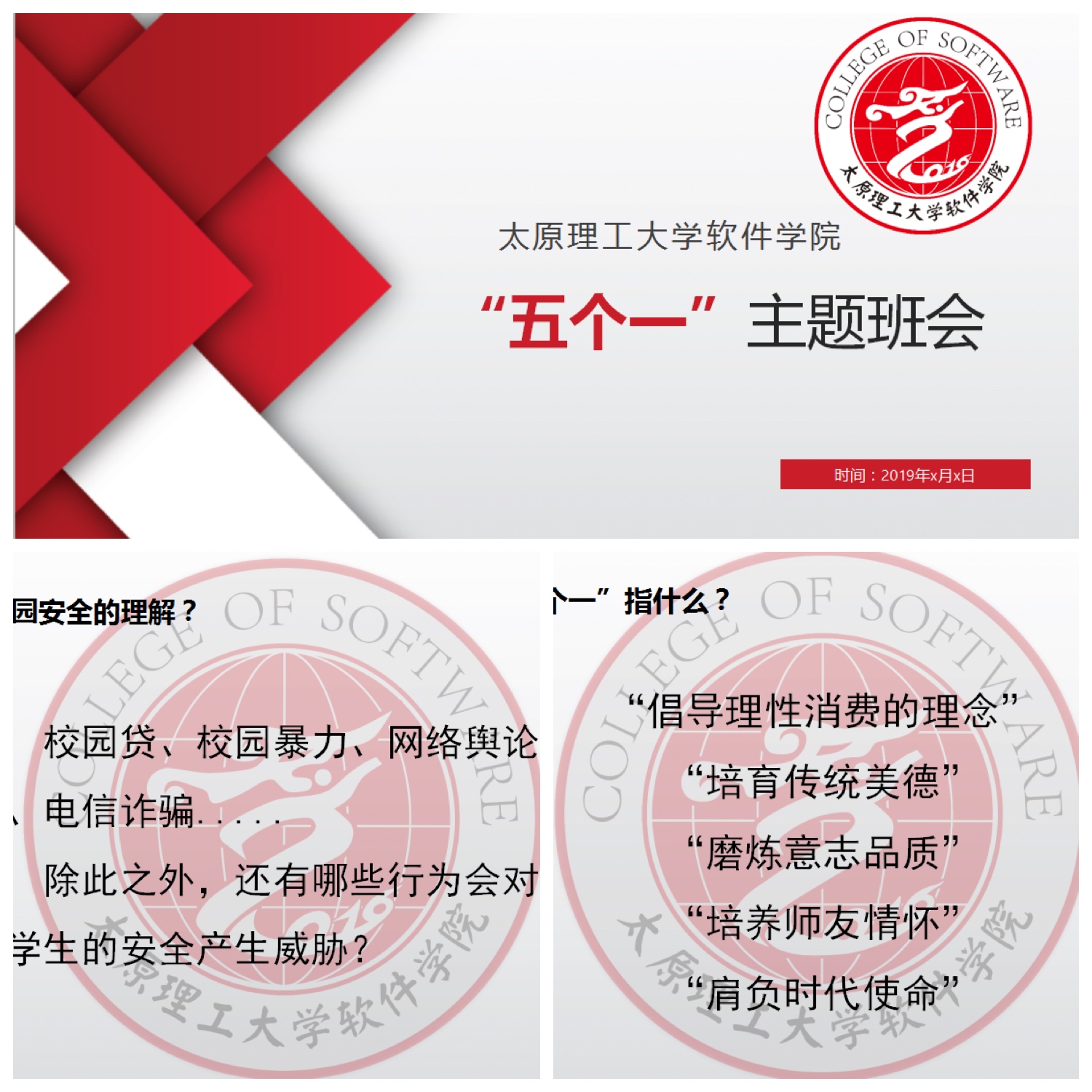 会后,学工办思想政治教育组和学院郭飞辅导员工作室积极准备“五个一”主题班会课件,经过统一备课、反复推敲和修改、小组试讲,3月20日学院班会课件已经形成。针对下一个阶段,要求全体辅导员在学院统一课件的基础上认真准备班会内容,亲自安排好班会并讲授课件内容,安排好充足的时间逐班进行班会,学院领导和各年级主任要根据班会的安排进行抽查,并参加部分班级的班会。
