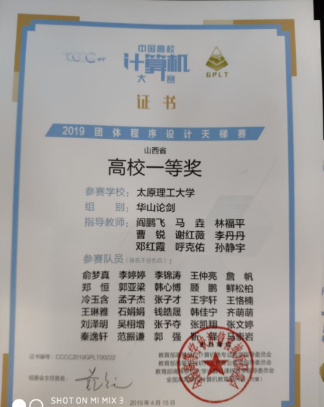 2019年天梯赛于3月30下午在山西大学进行比赛,我校共派出5支队伍,由9名指导教师和50名学生组成。