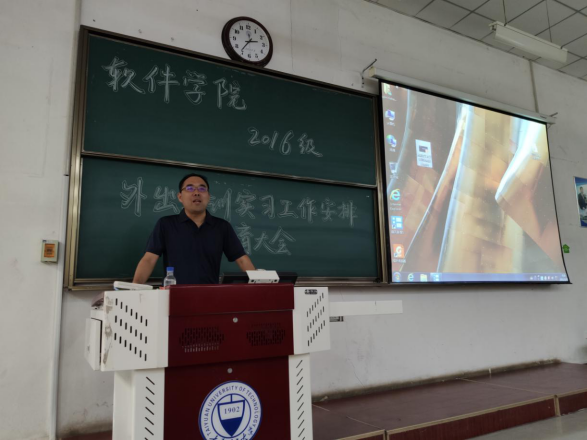 大会上学院领导首先教育全体16级学生要端正心态、正确看待实训实习,告诫大家不要把考研与实习对立起来,处理好工作、学习和考研的关系,珍惜成长成才的机会。同时叮嘱学生在外要注意安全,希望大家在这一年成长进步走向成功。随后学工办老师和软件工程系主任就校外实训实习期间学生管理相关制度和教学管理及教学安排进行了讲解,最后由各实训基地老师介绍实习实训相关安排。