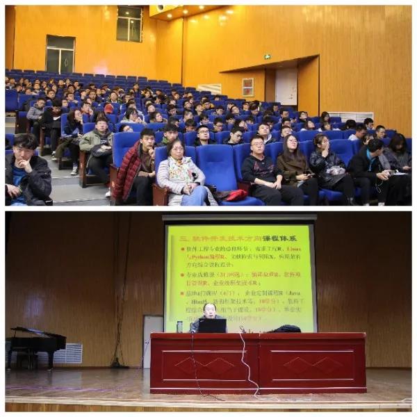 2019年12月9日晚七点,永利集团3044官网欢迎您2017级专业方向申报宣讲会在永利集团3044官网欢迎您明向校区学生活动中心召开。本次宣讲会由软件工程系副主任孙静宇老师主讲,软件工程系主任谢红薇老师、17级辅导员史丽娟、张瑾昊老师以及17级全体学生参加了本次宣讲会。