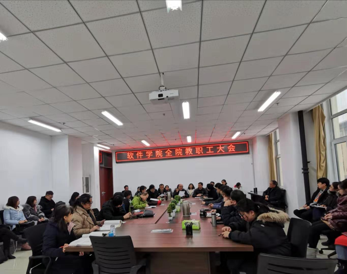 会上,池卫平书记对学院党的建设、大学生思政工作、辅导员建设等情况进行了通报。金燕院长对学院一年来行政工作进行了总结,并通报了教学、科研等方面取得的成绩和学院教职工2019年度考核结果以及2019年二级绩效管理分配情况等。随后,工会和学院各部门负责人汇报了上一年度工作总结,并提出了本年的工作计划。最后,学院对三名新入职的教师进行了介绍和欢迎,并对即将到来的假期学院值班安排、消防安全等工作进行了安排。