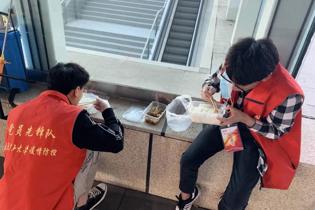 这四天,大家经历了早上6:30集合夜里23:00收工的高强度工作,经历了站立十几个小时的腿脚酸疼,感受了350人同时到站的庞大阵势,体验了在近30°C天气下长时间穿着防护服的闷热,但同时,也看到了明向清晨6点的阳光,看到了夜里闪耀的星辰,收到了同学们的无数句“谢谢”,做到了让同学们安全顺利地返校,更收获了一同蹲着吃盒饭的革命友谊。他们是党员先锋队,非常时期,义不容辞,任务来了,干就对了。