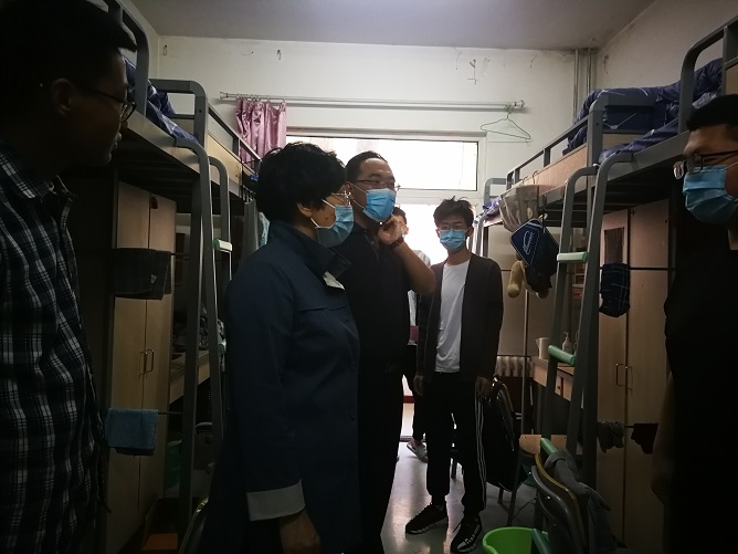 一行人先后来到研究生和18级实验室检查专业课教学、实验完成情况。池卫平要求管理干部、专业课教师、辅导员要提高政治站位、强化责任担当,认真落实好我校开学复课的有关要求,执行校党委关于疫情防控和学生返校的工作部署,统一思想、凝聚共识、多向发力,全方位为返校复学保驾护航。在19级返校学生上课教室,院党政亲切询问学生返校后的学习情况,并勉励大家要逐渐调整状态,尽快适应返校学习、生活,与任课老师相互配合顺利完成本学期学习任务。学院领导还走进学生宿舍,详细了解同学们返校行程和疫情防护等情况,就同学们关心的学习和生活问题进行解答,并叮嘱大家在校期间一定要做好个人的防护,保持宿舍卫生清洁,注意天气变化,调整作息时间,科学饮食生活,确保身心健康。