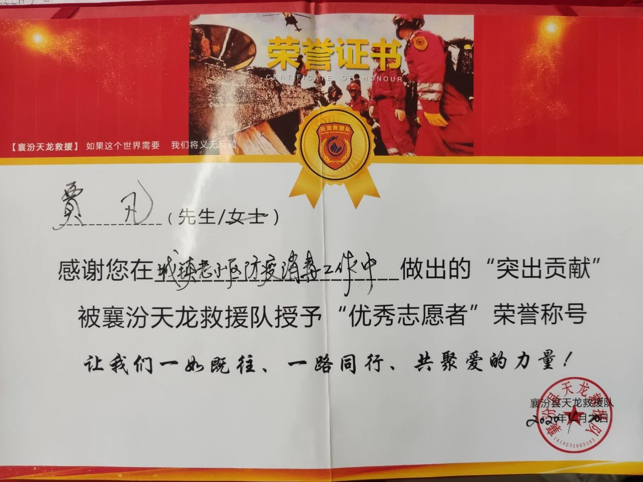 面对疫情,贾凡弘扬了雷锋精神、志愿精神,积极投身疫情防控工作,充分彰显了爱心善意和责任担当。对于他的公益精神和突出贡献,襄汾县天龙救援队授予贾凡同学“优秀志愿者”的荣誉称号,同时也向学校发来了感谢函。