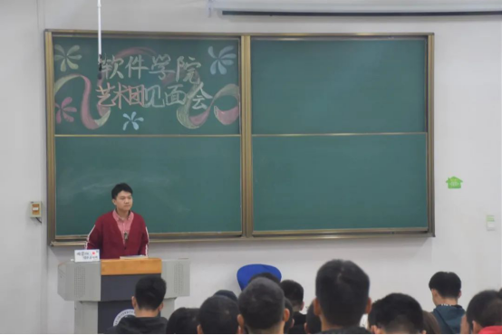 此次见面会由团长王子通主持,会议开始,他别开生面地向大家介绍了艺术团的职能及艺术团的精神内核,总结工作之余鼓励新生在艺术团加紧努力,虚心请教。同时,李泽团长对艺术团新成员表示热烈欢迎,并希望大家在学习之余能在艺术团充实自我,享受乐趣。