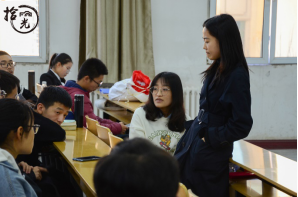 随后,冀晨曦学姐和臧小滨学姐与同学们交流互动,分享了个人的考研和学习经验,并且告诫同学们做最真实的自己,从情和理两个角度引导同学们积极乐观看待考研,一分耕耘一分收获,鼓励同学们努力奋斗,勇攀高峰。