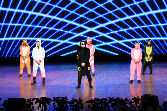 院艺术团主持队带来的情景诗朗诵《您的90,我的00》,表达出对人民英雄的思念和崇敬,山河浩荡,初心不改;铭记历史,记忆长存。一改往日严肃形象,身穿动物玩偶服的2020级辅导员带来一段有趣可爱的舞蹈《律动》,在搞怪搞笑中再次将晚会推向高潮。表演队的相声节目《贫穷奔小康》用诙谐的语言表达了我国人民对脱贫攻坚工作的决心与信心,在逗人一笑的同时,也暗含着深深的民族、国家自豪之情。最后,声乐队的《造亿万吨光芒》将乐器与语言化入旋律与节奏之中,祝福和祝愿学生、学院、学校,以及国家的远大前程。