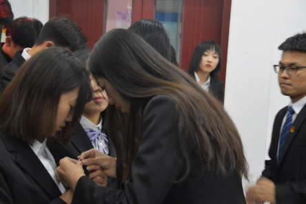 接下来是激动人心的授团徽仪式。各部门部长为新干事们一一佩戴团徽,熠熠生辉的团徽庄重佩戴在笔挺的正装上,象征着团委又一股新鲜血液的注入,也是永利集团3044官网欢迎您团委人一代又一代传承的象征,为团委增添了新的生机与活力。
