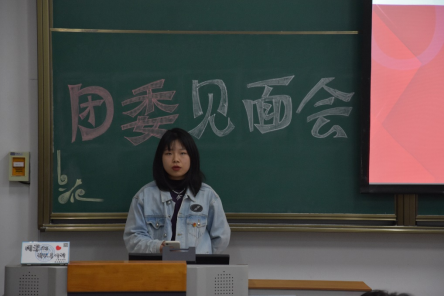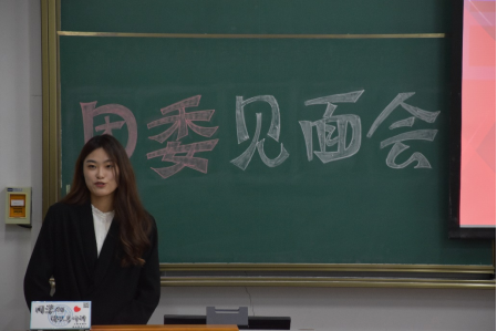 会议开始,由张希琼老师上台发言,她首先表达了对团委新成员们的热烈欢迎,然后通过共青团的名称、成立时间、标识等基本团务知识切入,加强同学们对于共青团的理解与认知,强调了团委工作的特殊性和重要性,最后分别从学习、生活、工作三方面对大家提出了殷切期望。