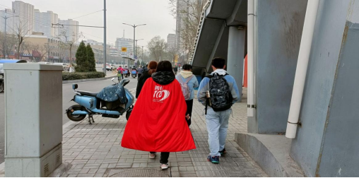 志愿者身披红色披风