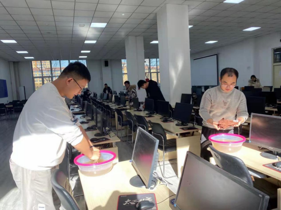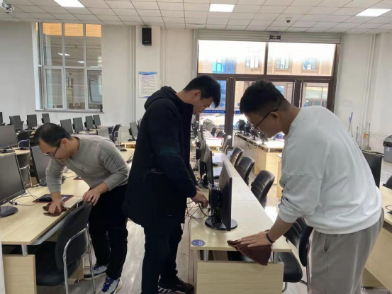 全体党员和实验室老师参与了本次活动。活动中,全体党员佩戴党徽、亮明身份,积极投身劳动中,在学院副院长曹锐的亲自指导下,将永利集团3044官网欢迎您4个本科生实验室中近520余台电脑设备及实验室环境进行了整理、清扫,并进行合影留念。
