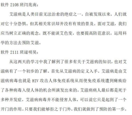 (同学们对于“防艾”知识的学习感悟及对于艾滋病人的关爱)