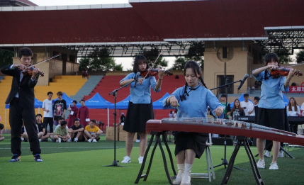 伴随着乐队演奏《我的名字》,音乐会在热烈的气氛中拉开序幕。歌曲《以梦为马》紧随其后,深情的演唱鼓舞了大家对未来的憧憬;一袭白衣少年们舞动了一曲《浪漫且自由》,展现了少年们的青春张力,手中的玫瑰也增添了浪漫气息;相声《口吐莲花》《新规矩论》令全场爆笑不断,掌声雷动;乐队《伤心的人别听慢歌》《你要跳舞吗》将全场气氛点燃,引领了整个操场的节奏,所有人跟着律动尽情舞动;器乐演奏《菊花台》,将传统乐器与现代电子乐器完美结合,优美的旋律让大家大饱耳福;少女们翩翩起舞——《loco》与《幻想童话》令现场尖叫不断;团学机构主席团的舞蹈《这!就是我们》、教师团队的歌舞合唱《时光入海》、辅导员们的歌舞串烧《三一零永远在线》再次引爆全场,将对19级同学们的不舍与勉励融入表演,“310永远在线”更是对大家永恒的承诺;正如舞蹈名称所言——《跳完这个舞我们就毕业了》,大三学子在这场表演中彻底放飞自我,魔仙堡、凤凰传奇等魔性BGM配合灵动的舞姿,展示出他们的活力;深情朗诵《追忆》、歌曲《纪念》,一字一句都深深引起了同学们对在校生活的共鸣,回忆翩然,未来可期……