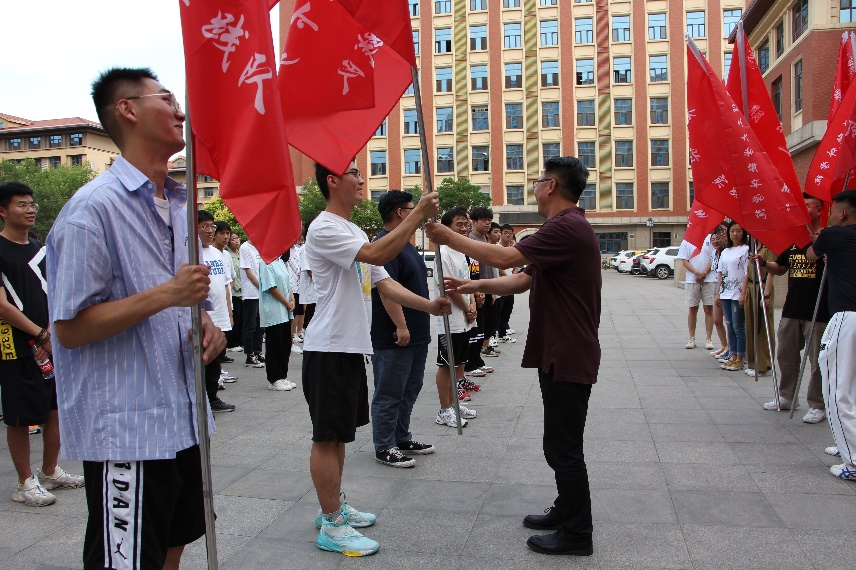 接下来,吕晓勇书记进行授旗仪式,将每一展旗帜都一一郑重交给了各实践队队长,并给予了深切期望。吕书记指出社会实践活动不是娱乐享受,而是要去深刻体会乡村生活的艰辛与不易,要努力经受磨练,并且把此次活动当作人生中不可多得的宝贵经历,真正地让自己变得更优秀。
