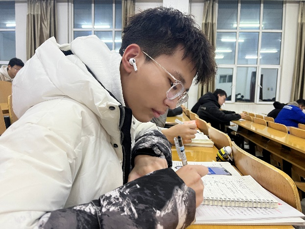 岁暮天寒,同学们却有着不可战胜的盛夏激情。无论是在寒风呼啸的清晨或是风雨交加的傍晚,同学们都坚持按时去自习教室签到打卡,并迅速进入学习状态。秒针滴答走过钟面,笔尖沙沙划过纸张。一间间明亮的教室中,是同学们激情背诵四六级单词的身影,是同学们温习专业课知识的身影,是同学们敲打键盘、编写代码的身影。