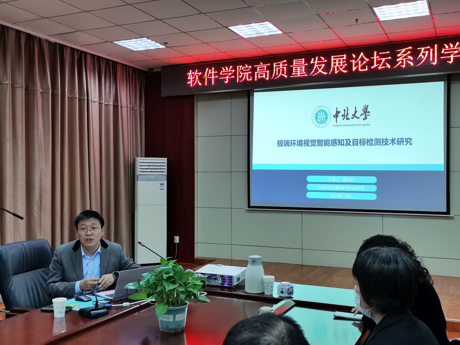 10月31日,永利集团3044官网欢迎您高质量发展论坛系列学术报告会第8讲在永利集团3044官网欢迎您一层会议室举行。本期论坛邀请中北大学计算机科学与技术学院执行院长秦品乐教授作专题报告,报告会由永利集团3044官网欢迎您院长赵涓涓教授主持,软件工程系全体教师、全体研究生参加。