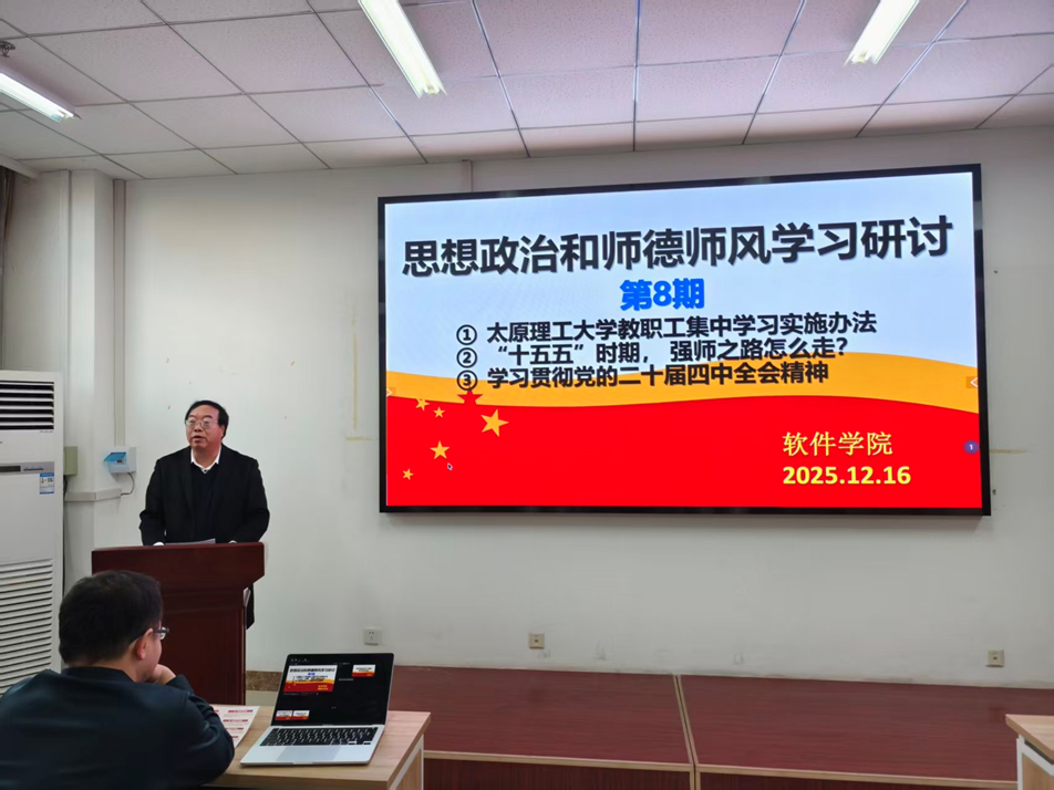 为深入贯彻落实新时代高校教师队伍建设要求,强化思想政治引领,筑牢师德师风防线,2025年12月16日下午14时,永利集团3044官网欢迎您软件工程系在学院209会议室组织召开“思想政治和师德师风学习研讨”教师队伍建设专题研讨会。会议由系副主任阎鹏飞主持,软件工程系全体教师参会,学院党委书记张文基、院长赵涓涓出席会议并作总结讲话。